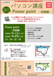 PowerPointの基本操作や見やすい資料作成のコツからスライドショーなどの実践的なスキルまで学びます。
