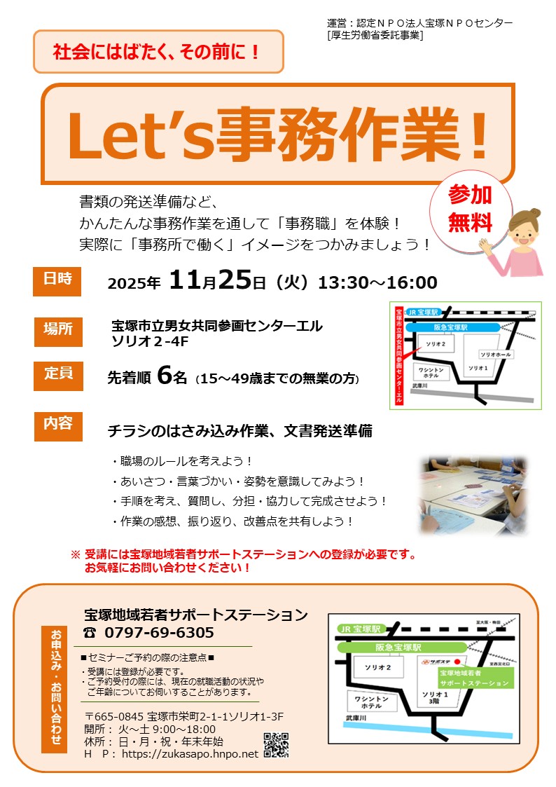 チラシ挟み込みや発送作業など、いろいろな事務作業を行います。